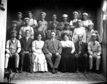 Front Row: Jack Philips, Clarence Kaercher, Christine Ratz, A.E. (Adam) Ratz, Mabel Ratz, Bert C. Ratz, J. Raun