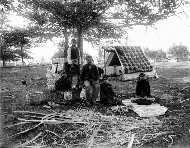 Indigenous family - men worked pulling flax and women often wove baskets